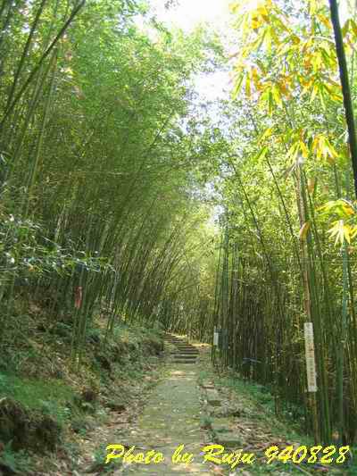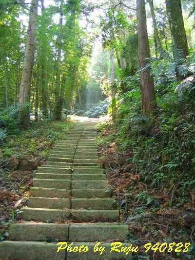 停好車,發現路旁有指示牌,準備妥當就出發了,沿途還問了個當地的婦人,告知較確切的路徑,終於找著了入口,可是天啊!竟然是台階,看到台階心裡冷一半,我最討厭爬台階,累死人喔!(要爬台階,在家爬樓梯還不是一樣?)等看清楚介紹有1千8百多階,差點"烏暗眠"(台語)。![]()