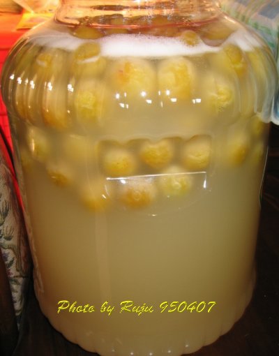 又到了青梅產季,所以開始釀梅酒了,這罐是950401釀的,拍張照做個紀錄,看到它上面的泡泡表示它有在發酵吧。