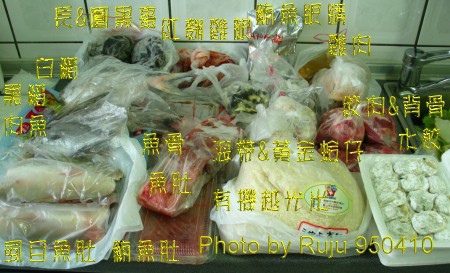 所以這次婆婆說要寄東西來,我想說應該跟以前一樣是90cm的箱子,而且她還說要寄小箱的,那我想應該是60cm的,沒想到我11點多到管理室收件時,我的媽啊!竟然是120cm的紙箱啦!心想這這這……哪裡是比較小箱哩?管理員說:這箱是妳的喔?很重ㄋㄟ,妳拿得動嗎?我說:應該可以吧!雖然臉上微笑可心想拿不動也得拿吧!裡面幾乎都是冷凍食品必須馬上進冰箱,當時因為還下著雨,我為了避雨還抱著它下到地下室再上樓,顧不得手痠回到樓上趕快拆箱放進冷凍櫃再說,因為取出時東西不是很硬,感覺有點退冰吧!尤其是裝魚的袋子都濕濕的,所以需要稍為再整理過,趁著整理之際拍張照片存證囉!