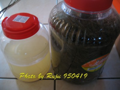 3/18釀造的五葉松酒,3/11釀造的楊桃酒,也於4/17一起把它轉桶了。 (不過楊桃酒沒拍照,因為記憶卡剛好滿,不過還是要記錄一下囉。)