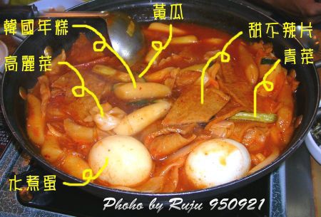 第一天吃的午餐是辣炒年糕,我可是很期待的喔!因為我沒吃過外面賣的韓國炒年糕,只吃過自己炒的,這樣一鍋是四人份。