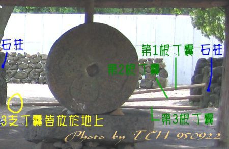 丁囊就是在前庭院前立兩根50公分以上高度且鑽有3或4個洞的石柱,洞孔是用來搭長棍用的,那長棍就稱為丁囊。
