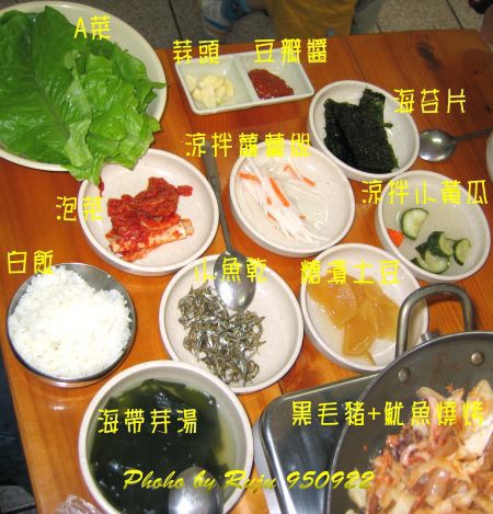 配菜,韓國餐餐的配菜都差不多是這些,不像我們吃的菜都得炒過、煮過之類的,不過我吃得蠻習慣的,只要不要太鹹。