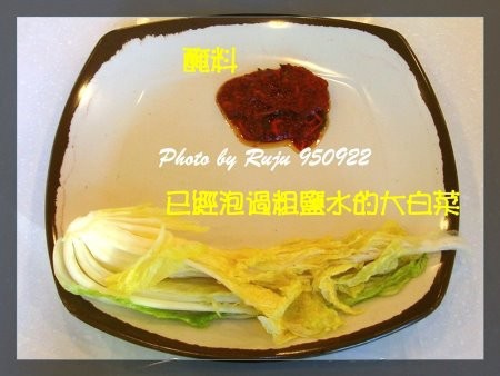 泡過粗鹽水的白菜要擰乾,這是讓我DIY的那一份。