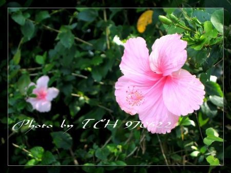 途中的粉紅色扶桑,還有很多其他的花,不過沒一一點名。