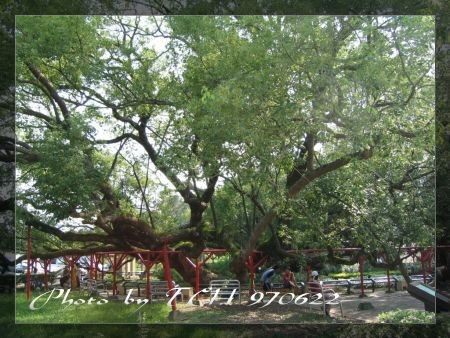 這裡就是此行的最高點,那幾棵樹就是我說了很多次的五福臨門神木,紅色的是鐵欄杆,用來支撐樹幹的,雖然不怎麼好看,不過在這一大片樹蔭下休息很舒服!