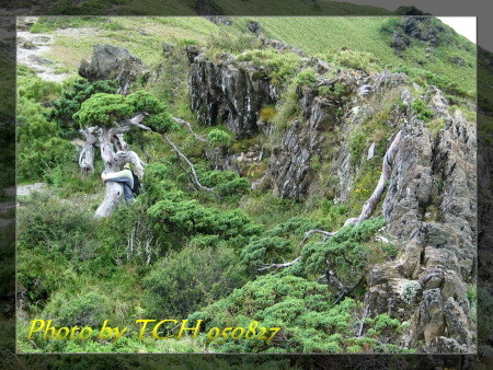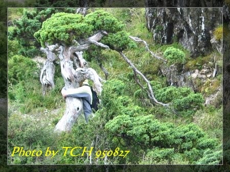 玉山圓柏,有個隊友抱著它不放,想來很久沒見面了,非訴衷腸不可。