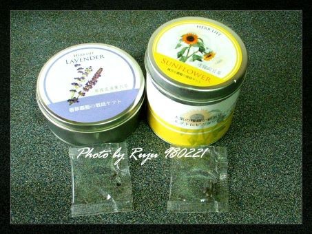 這是老公同事送的年終禮物,是薰衣草跟向日葵的小盆栽禮盒,拍照時種子擺錯位置了。_