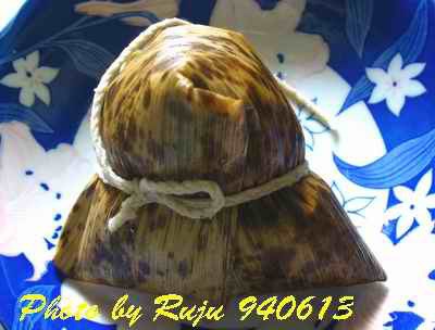 大姨包的南部粽,是白米水煮粽,尤其是一定要用一片桂竹殼(舅舅自家的)搭一葉麻竹葉包。