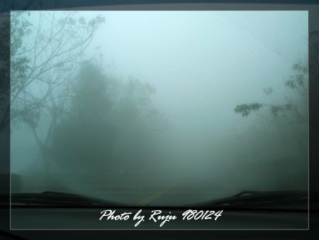 下午2點時車外就已經是一片霧濛濛的景象囉!