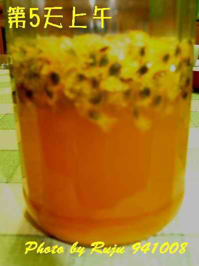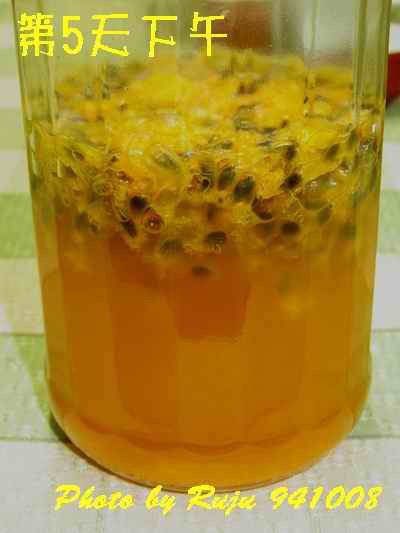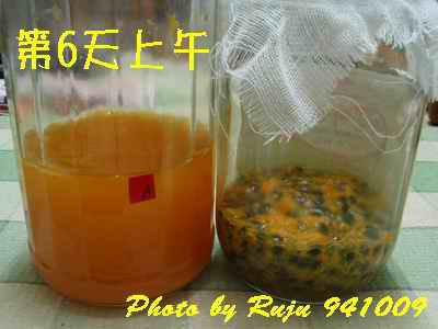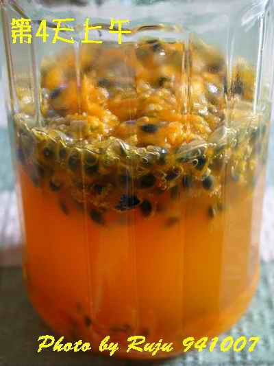 第5天晚上這樣是不是滿滿的氣泡啊?香味感覺跟新鮮的百香果是不同的,可又不覺得是酒味。