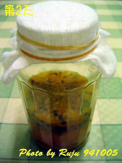 第2天有部分的籽跟果肉已經上浮,浸泡液變得比較混濁,感覺味道沒有早上香濃了,還是我嗅覺疲乏?