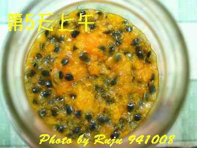 第5天上午罐內的果肉跟籽都已經浮上表面了,香味也有稍微不同。