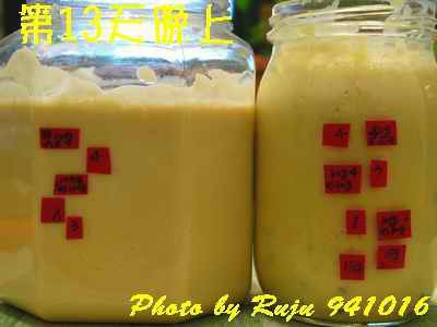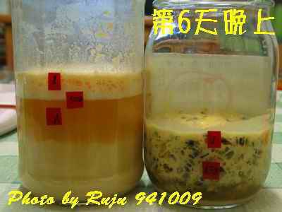 第1天是深夜了,所以沒拍照,照片是第2天下午才拍的,其實第一天看起來就是所有固體都沉在底部,液體比較清澈。