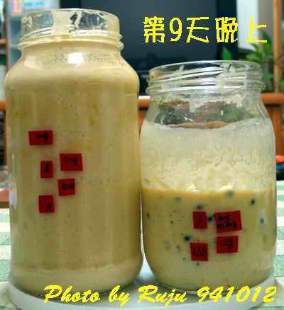10/13凌晨,左邊的那瓶已經漲出瓶口,所以我把它換了大一點的家。