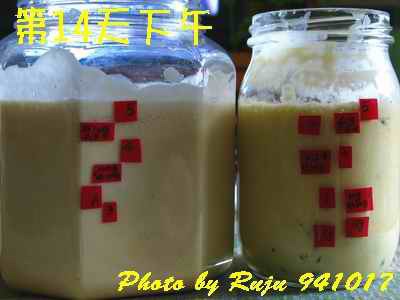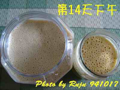 第4次餵養:10/13pm10:00,左邊100g粉+100g水,右邊30g粉+30g水。