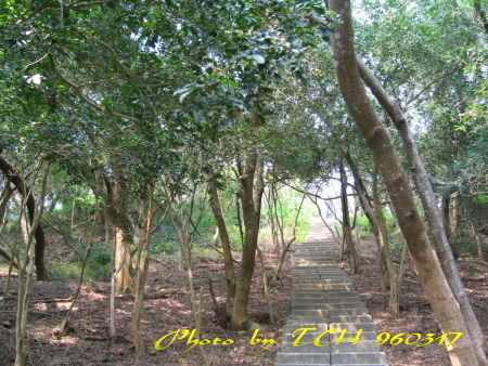 這裡是虎頭山公園的範圍,階梯往上就是觀景台的位置,下方往左邊方向走就會到達神社了,這片是相思樹與七里香林,比較瘦、比較白的是七里香,都蠻高大的呢!