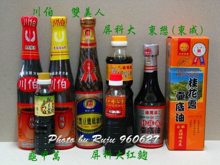 嫁給老公後剛開始大部分用的是婆婆給的日本的鰹魚醬油/民生壺底油精(沾魚肉、海鮮)跟自己買的金蘭/味全/萬家香/龜甲萬的醬油(滷肉...),不一定買哪個廠牌,另外李錦記的干貝蠔油(極品瑤柱蠔油)一度也是我家常用的醬料之ㄧ,後來有次回高雄要吃白斬雞時,我怎麼吃都覺得婆婆冰箱裡那些日本醬油不對味,然後婆婆說她有一罐人家拿來寄(放)的傳統黑豆醬油,不然開來試試看好了,這下子才終於找回了記憶中的味道,飯後洗碗時婆婆跟我說真的還是要沾這種醬油才對味ㄟ,後來婆家才開始又使用起台式的醬油。
