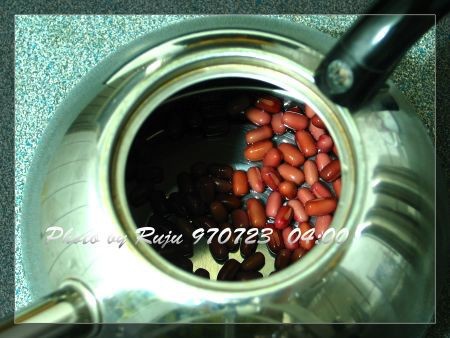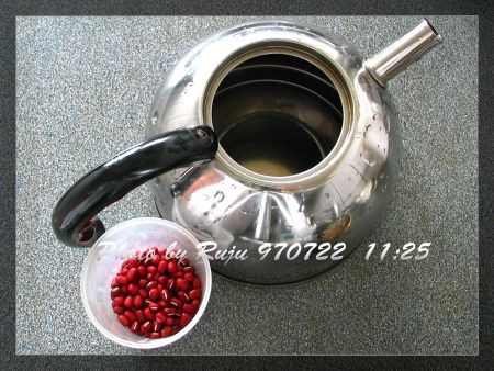 紅豆洗好放入水壺內,催芽中...。<未完...待續...>