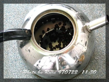 竟然長芽了,倒掉壺裡的水時,有顆紅豆掉出來,芽約有3mm了,真是太好了,呵呵...。