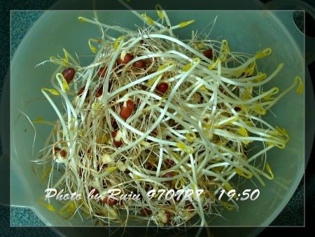 想想還是補張照片好了(沒相片沒真相),因為要避開光線,所以在比較暗的地方拍的,有看到發芽的紅豆了吧?還蠻長的。
