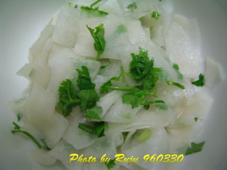 涼拌大頭菜,就是之前鄰居給的那一大顆,昨天得空才把它拿出來處理,去好皮後試吃一口,發現它生吃就好甜好香喔!所以捨不得煮了它,決定還是用涼拌的方式,這樣處理吃起來香甜清脆,不過對怕吃香菜的人當然就没口福囉!