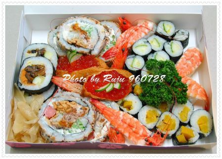 ,還好其他的都還能接受,我怎麼記得以前花壽司都是放兩種不同的口味啊?看看以前的文章--福野的壽司盛合,內容真的有差啦!鐵火捲(鮪魚捲)竟然變成醃蘿蔔捲,這.....也未免差太多了吧!啊.....每次去都點一樣的產品卻有不一樣的呈現,完全無法預料,有點像在買樂透,不過還好這次蝦子很新鮮,小黃瓜也沒有怪味道,然後那個花壽司裡面好像有放上九孔片(或是某種貝類的肉),除了美乃滋像不用錢之外,吃起來味道跟口感都很不錯;海苔捲裡的香菇也很香。