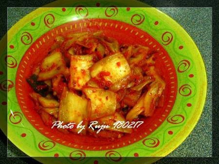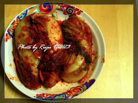 前天晚上做了今年的第一批韓式泡菜,今天午、晚餐各吃掉1份(1/8顆山東白),我覺得自己做的泡菜味道比賣場買的進口的還好吃呢!
