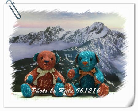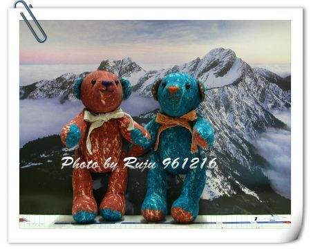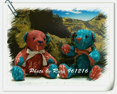 老公幫忙拍的,做好那天他說這2隻都是他的喔!呵呵呵.....,每次都這樣說,知道我是做完就覺得滿足了的那種人,有沒有留在身邊好像也不是那麼重要的。(不過當然也希望對方能愛惜,畢竟手工縫的東西不管好不好看都是經過一番努力的,有時還會不小心幫自己針灸了。)