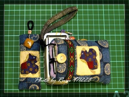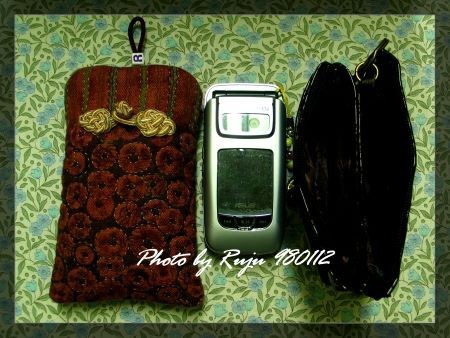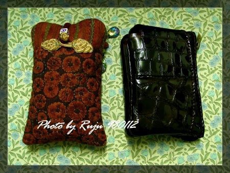 <<980113補>>左邊是我的手機袋,終於完成了;右邊是我新買的小的錢包,咖啡色漆皮的,是想要給婆婆的。