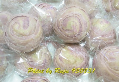 上星期四包的肉鬆芋頭酥,包的有夠醜的,白的部份很多,因為我偷懶桿得不夠長,不過口感不錯,帶回來17顆,4顆老公帶去公司請同事吃,剩餘13顆竟然没送人就都被我們兩個吃光光了啦!肚子越來越圓了,這樣下去可怎麼得了?![]()
