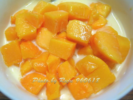 愛文芒果+主聯的"四方低脂鮮奶"一起吃,我覺得很好吃
