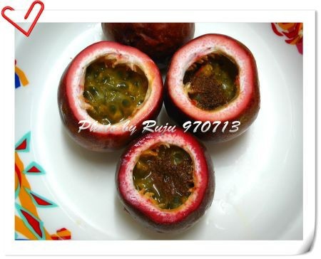 今天吃百香果時,想到容慈的百香果創意甜點--加梅子粉及碎冰,不過我家沒碎冰,那就省略吧!(沒相片沒真相