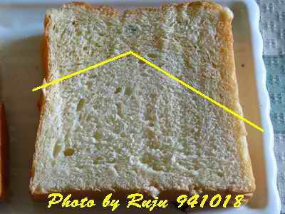 兩塊麵包的底部左邊是平滑的,右邊比較粗糙。
