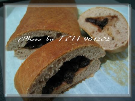 這個是老公做的,相片也是他拍的,這麵包是孟老師100道麵包中的紅酒葡萄乾麵包(p130),因為冰箱還有剩一些西班牙紅酒,所以我就建議老公做做這個配方來吃吃看。